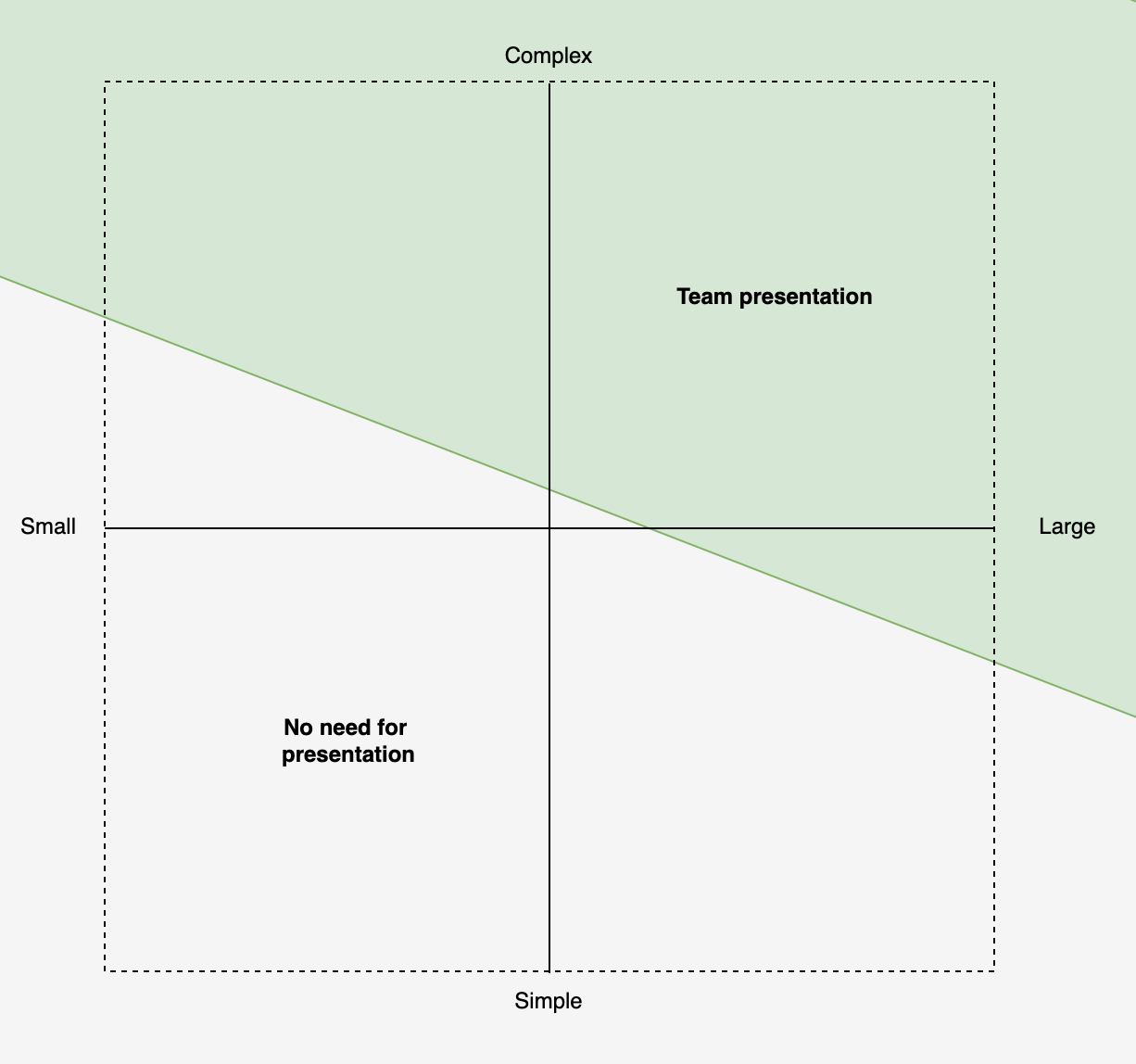 If a task is technically complex, it will usually need a presentation, even if the code update is moderately small.